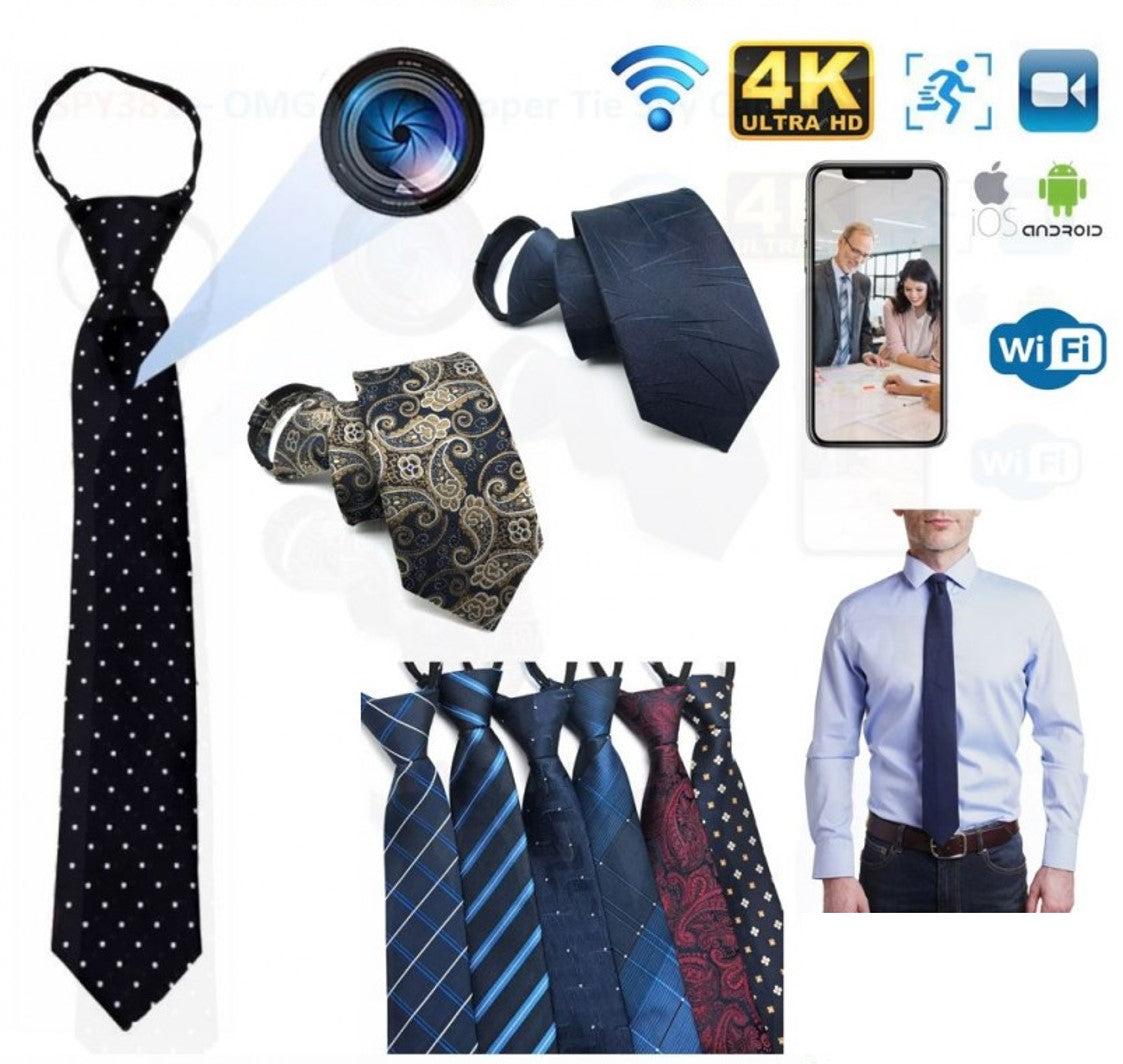 Caméra de cravate intelligente Full HD : caméscope espion de cravate WIFI de protection exécutive avec caméra de cravate de détection de mouvement à distance. Convient pour les gardes du corps, les événements, les cortèges, les réunions, le lieu de travail, le bureau ou n'importe où ailleurs
