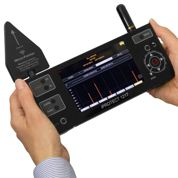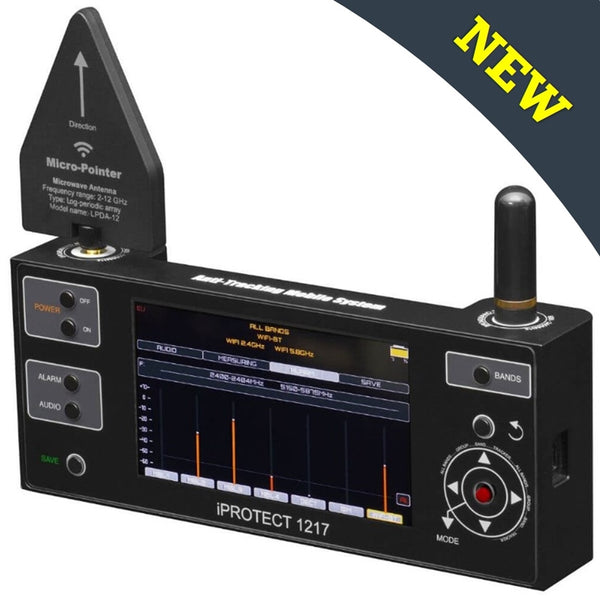 O iProtect 1217 é um detector recém-lançado (2022) de sinais móveis e sem fio que é capaz de encontrar todos os tipos de dispositivos ocultos, como telefones celulares, espiões, câmeras ocultas, gravadores de voz ocultos, rastreadores GPS, qualquer tipo de dispositivo de vigilância secreto que usa comunicação móvel e envia sinais.